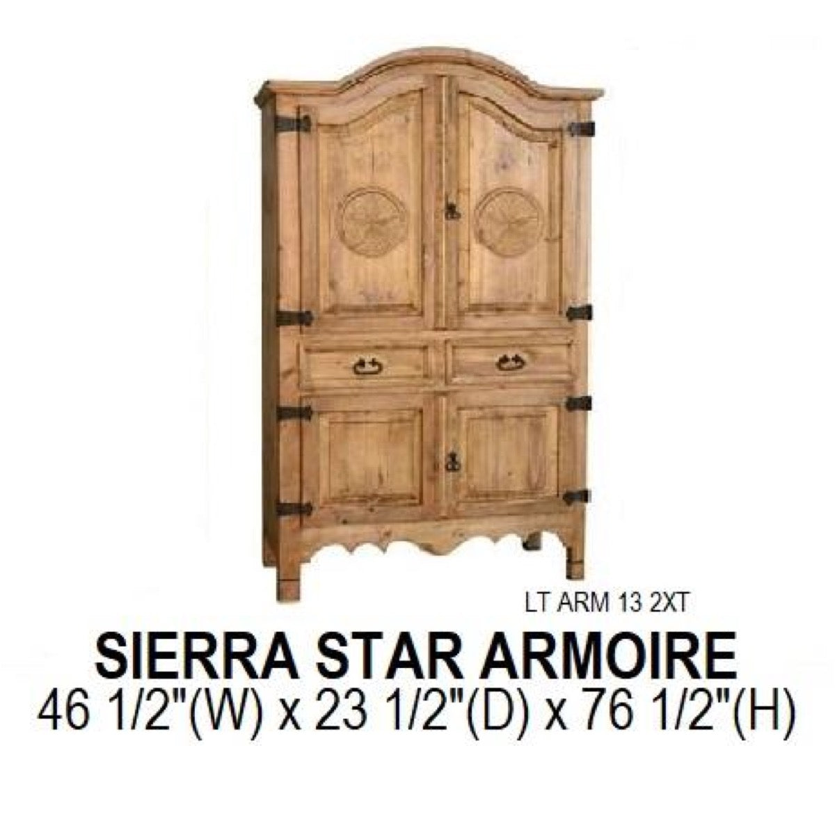 The Sierra Armoire is a perfect storage piece for your bedroom. Hide your TV or store away more clothes. It can be ordered with or without stars.